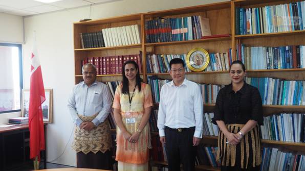 12月14日上午,调研团会见了汤加首相新闻顾问、《时代报》主编卡拉菲。卡拉菲先生热情赞扬了中国政府和人民对汤加的无私援助和帮助,表达了汤加人民对中国政府和人民的感谢。他也指出,汤加不应该过分依赖外来援助,而是应该学习中国人自力更生、艰苦奋斗的精神,更好地发展自己的国家。仲伟合校长对他的这个观点表示认同,也祝福汤加人民能够拥有更为美好的未来。随后,调研团来到了调研的最后一站——汤加外交贸易部,在这里会见了汤加外交贸易部副常秘、汤加前驻华大使,以及曾在广外岛国培训班学习过的汤加王储。双方就中汤两国的友好关系、未来的发展前景等问题交换了看法和意见,会谈在十分友好的气氛中结束。