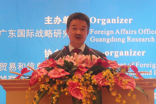 郑建荣作题为“中国-东盟合作中广东的机遇与挑战”的报告