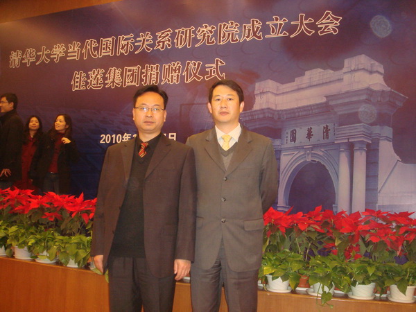 2010年11月17日,副秘书长刘继森教授和美国研究中心主任唐小松教授一行参加了清华大学当代国际关系研究院的成立大会。成立大会由清华大学副校长谢维和教授主持,顾秉林校长向唐家璇国务委员颁发了名誉院长的聘书。佳莲集团董事长王雪莲女士向清华大学国际关系研究院捐赠9800万元并在大会上致辞。北京大学国际关系学院院长王缉思、中国社会科学院副院长李慎明、外交中副部长张志军、教育部副部长郝平、民盟中央常务副主席张宝文也在成立大会上致辞。最后,唐家璇名誉院长作了讲话。他分析了当前国际关系发展的趋势,他认为国际关系正处在大发展、大变革、大调整时期,各种力量交流、交融、交锋,需要思想的崛起。他还认为公共外交已经成为中国外交方兴未艾的新领域,并提出要将清华大学国际关系研究院打造成具有中国特色世界一流的智库。