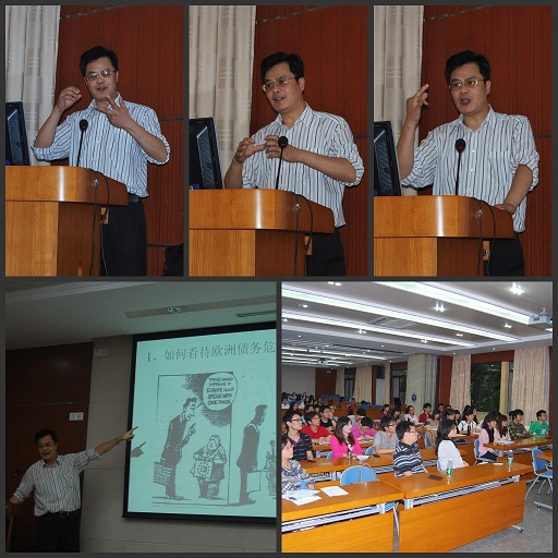 应欧洲研究中心邀请,11月18日下午,中国社科院欧洲研究所副所长江时学研究员在六教B106欧洲论坛与我校师生探讨欧债危机。此期论坛由欧洲研究中心和法硕中心联合举办,全体欧洲学硕士研究生和法律硕士研究生参加了本次论坛。