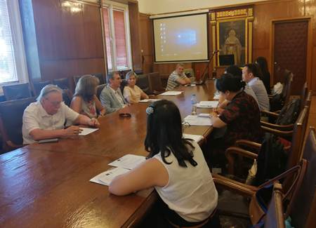 3-5日,代表团成员参加了由索菲亚大学组织的系列活动和多场讨论。索菲亚大学副教授克拉森·斯坦切夫就“欧盟经济与中国”作主题报告,并与代表团进行了交流。里德·金博士与莉娜·茨薇科娃博士就EURASIA项目框架下在线课程的开发进行了详细的介绍。索菲亚大学从事欧洲研究教学的老师为欧洲研究中心开设的“欧洲一体化政治研究”与“欧洲研究经典文献选读”等课程提供了有益的改进意见,并为EURASIA项目框架下新开设的“欧盟政治与决策”、“欧盟对外关系”、“理解欧洲联盟”、“欧盟与美食”等新课程提供了详细的指导意见。