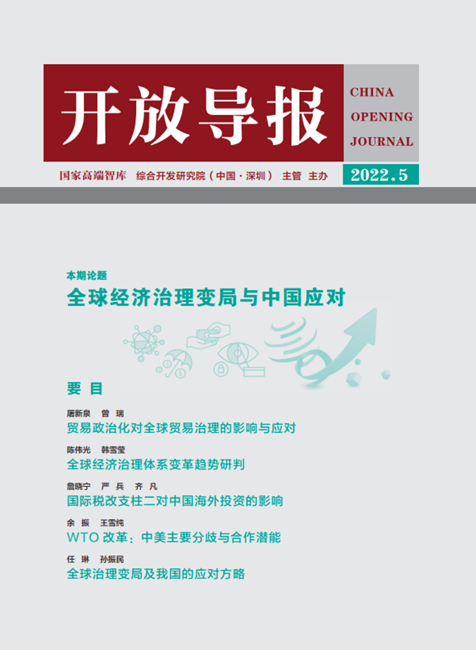 2022年10月11日,我院高级研究员陈伟光教授与博士研究生韩雪莹共同撰写的文章《全球经济治理体系变革趋势研判》在《开放导报》2022年第5期上发表。