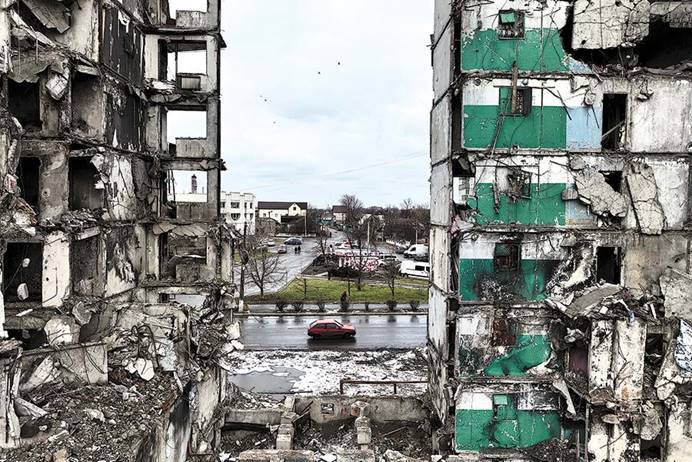 Destroyed buildings in Borodyanka, north of Kyiv, on Wednesday.