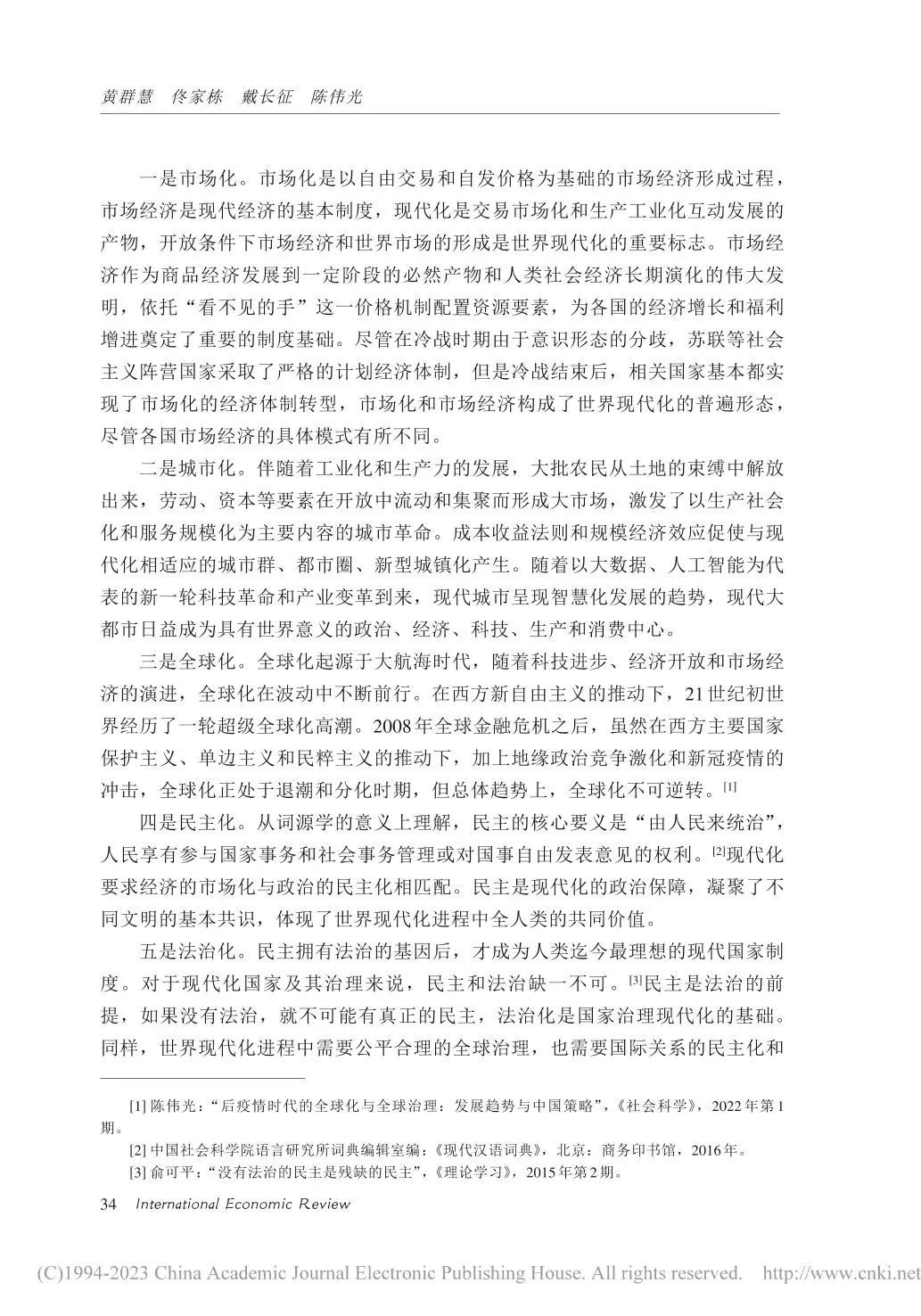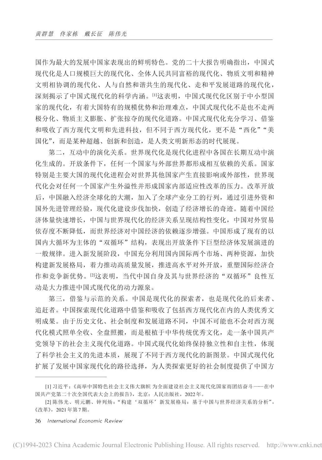 近日,我院高级研究员陈伟光教授与中国社会科学院经济研究所所长黄群慧研究员、南开大学讲席教授佟家栋、对外经济贸易大学国际关系学院院长戴长征教授合著的论文《正确理解和大力推进中国式现代化》发表于《国际经济评论》,该文引起学界较高关注。