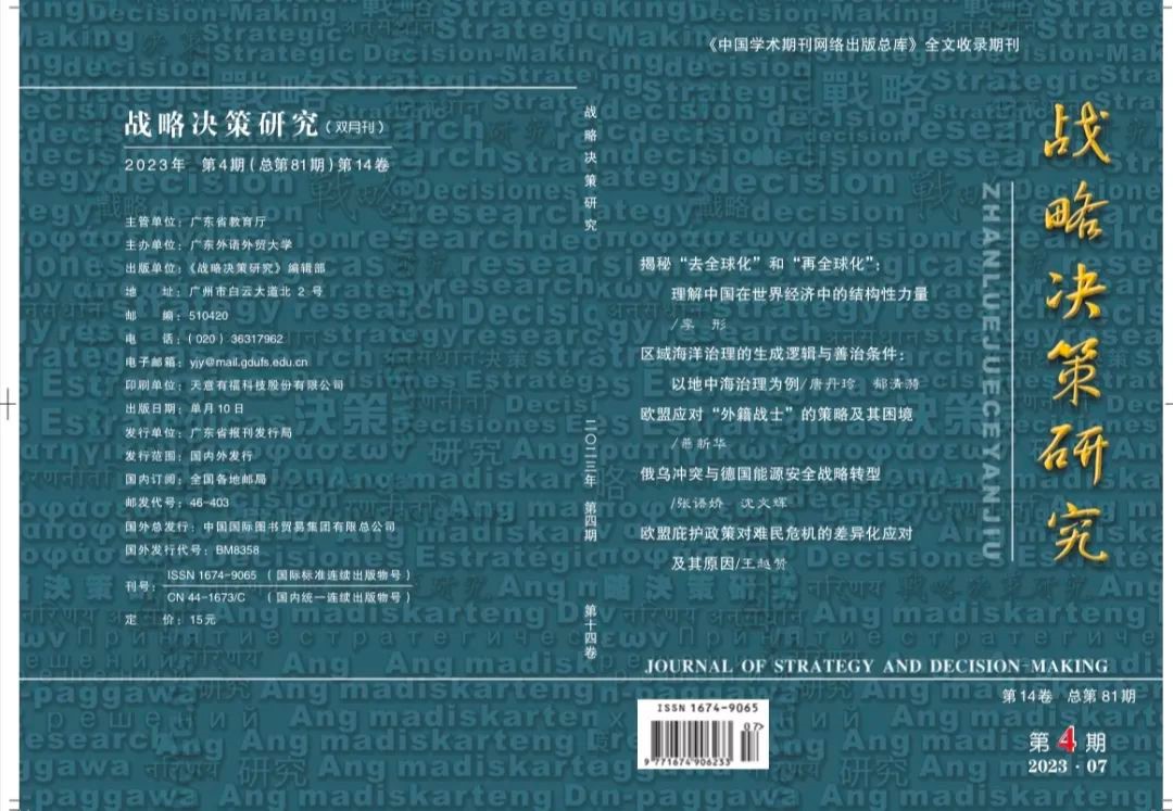《战略决策研究》是由广东省教育厅主管,广东外语外贸大学主办的学术期刊。刊物围绕国际战略问题,立足于中国现实与中国和平发展的重大战略需求,反映国内外学术界对国际形势与国际战略的最新研究成果,既注重论文的理论性又强调研究的实践性与时代意义,力求在把握世界发展脉络的基础上,探索中国和平发展的有效战略选择与政策思路。刊物实行专家匿名审稿制度,坚持以学术为导向,坚持“宁缺毋滥”原则,确保文章学术质量。