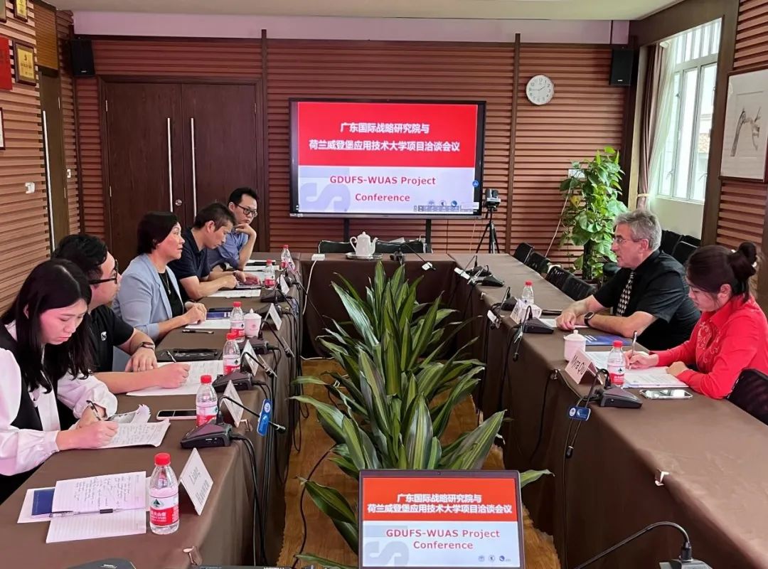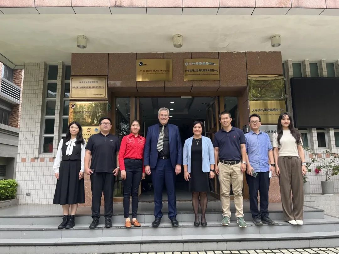 李青院长对Peter Birdsall等人来访表示欢迎,并介绍了广东国际战略研究院、广东外语外贸大学黄埔研究院发展情况,提出了联合办学、学生互访的合作方案。