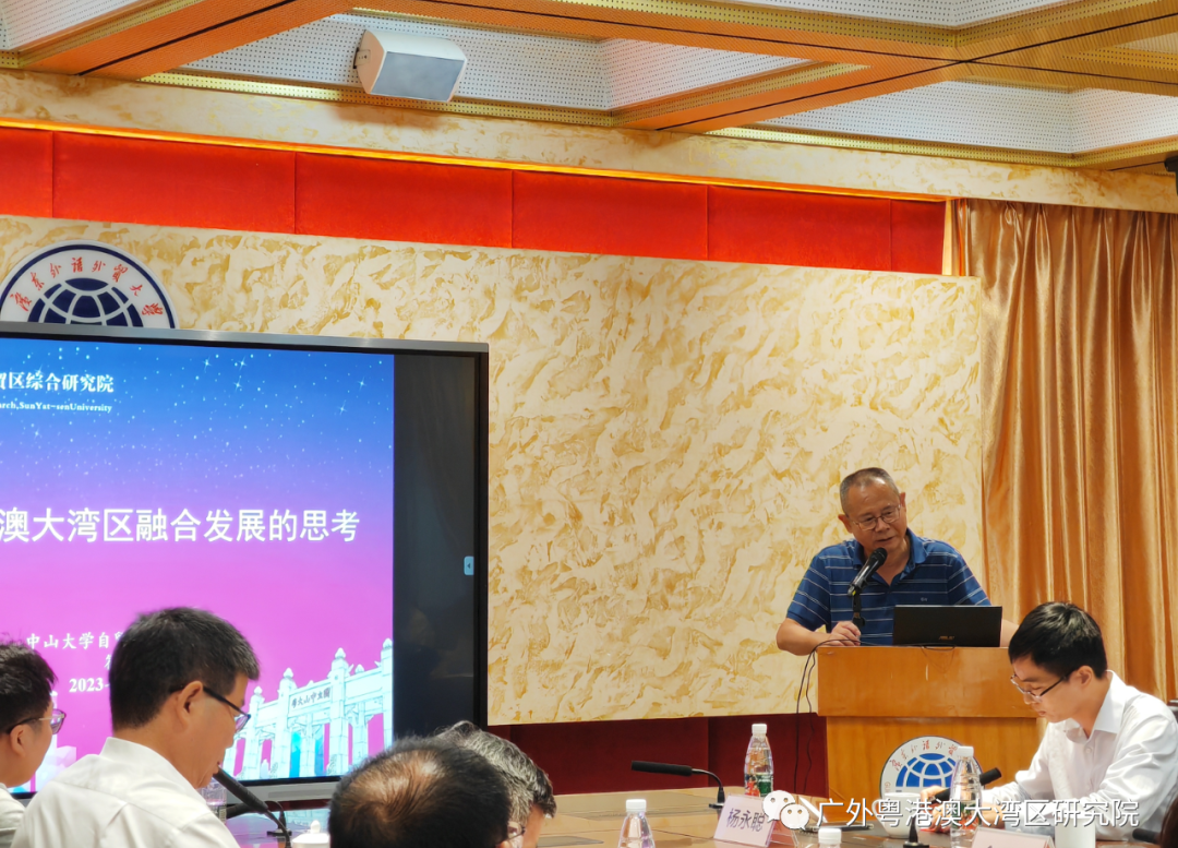 2023年11月11日下午,21世纪海上丝绸之路国际智库论坛(2023)的平行论坛四:“一带一路”与粤港澳大湾区建设研讨会(2023)在广东外语外贸大学白云山校区第一会议室举行,研讨会由广东外语外贸大学粤港澳大湾区研究院、大湾区建设与区域协调发展重点实验室、国际湾区研究院、粤商研究中心联合承办。中山大学自贸区综合研究院院长符正平教授、暨南大学产业经济研究院院长陶锋教授、华南师范大学人力资源中心主任谌新民教授、澳门科技大学可持续发展研究所所长刘成昆教授、华南农业产业发展研究中心主任万俊毅教授、广东省社会科学院学术委员梁育民研究员、广东外语外贸大学会计学院院长余鹏翼教授等等学者受邀参加本次研讨会并作主旨发言。