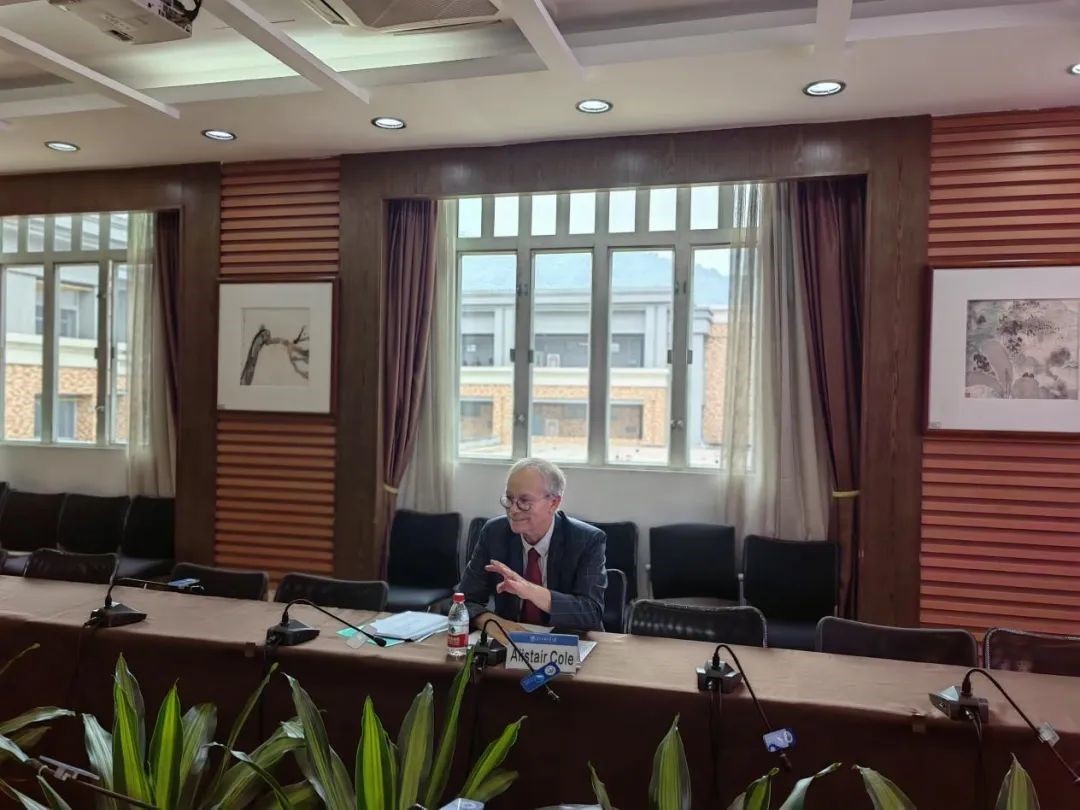 钟祖昌教授等对Alistair Cole教授一行表示欢迎,介绍了广东外语外贸大学、广东国际战略研究院与英国等数十所高校保持的常态化师生交流合作。Cole教授介绍了香港浸会大学政治与国际关系系及让·莫奈中心,并表达对促进研究合作、论坛合作及师生交流的愿景。