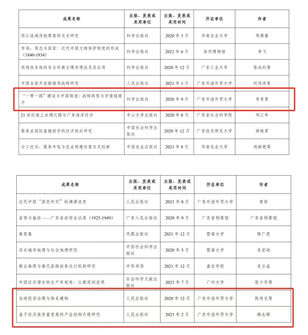 近日,广东省人民政府公布了第十届广东省哲学社会科学优秀成果奖获奖名单,我院李青教授、陈伟光教授和韩永辉教授荣列榜单。李青教授著作《“一带一路”建设与中国制造:战略转型与价值链提升》(科学出版社)获三等奖;陈伟光教授《全球投资治理与体系建构》(人民出版社)与韩永辉教授《基于经济高质量发展的产业结构升级研究》(人民出版社),分获二等奖。