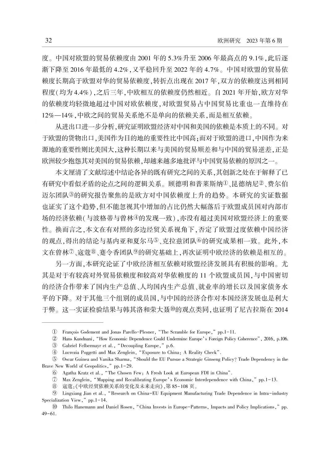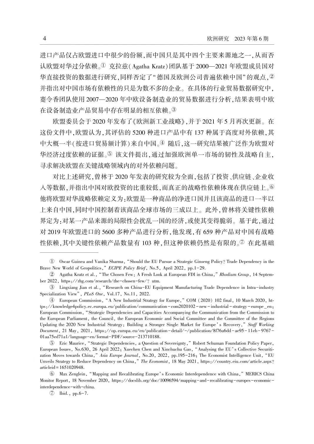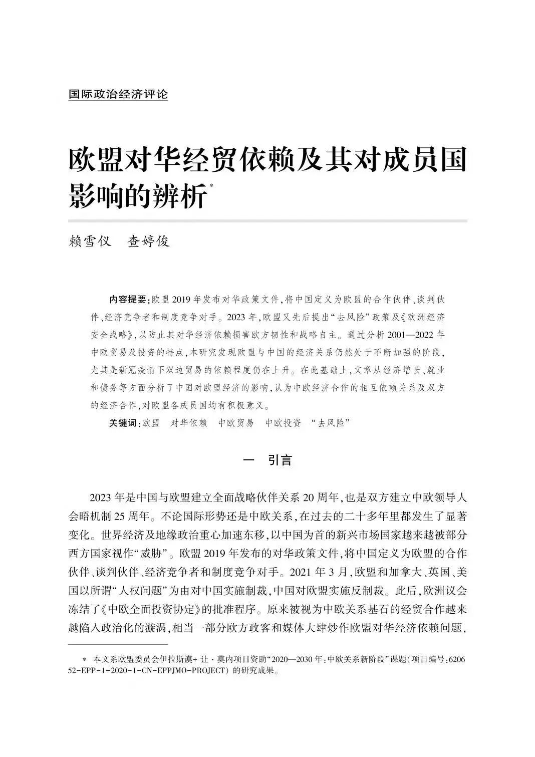关键词:欧盟 对华依赖 中欧贸易 中欧投资 “去风险”