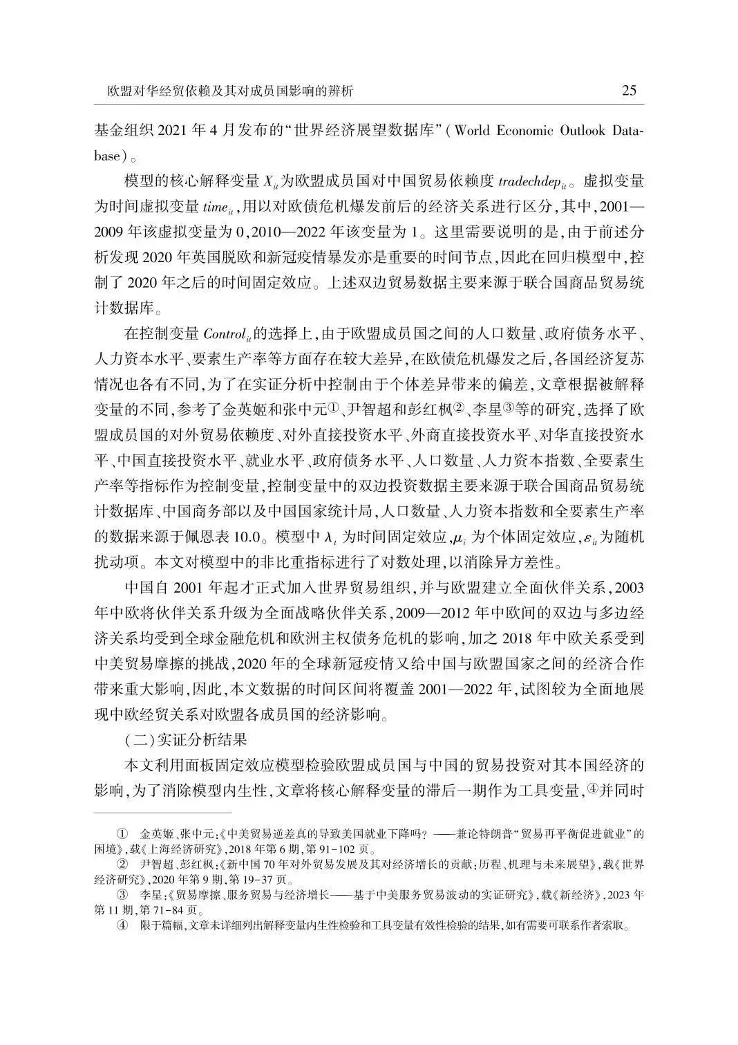 欧盟2019年发布对华政策文件,将中国定义为欧盟的合作伙伴、谈判伙伴、经济竞争者和制度竞争对手。2023年,欧盟又先后提出“去风险”政策及《欧洲经济安全战略》,以防止其对华经济依赖损害欧方韧性和战略自主。通过分析2001-2022年中欧贸易及投资的特点,本研究发现欧盟与中国的经济关系仍然处于不断加强的阶段尤其是新冠疫情下双边贸易的依赖程度仍在上升。在此基础上,文章从经济增长、就业和债务等方面分析了中国对欧盟经济的影响,认为中欧经济合作的相互依赖关系及双方的经济合作,对欧盟各成员国均有积极意义。