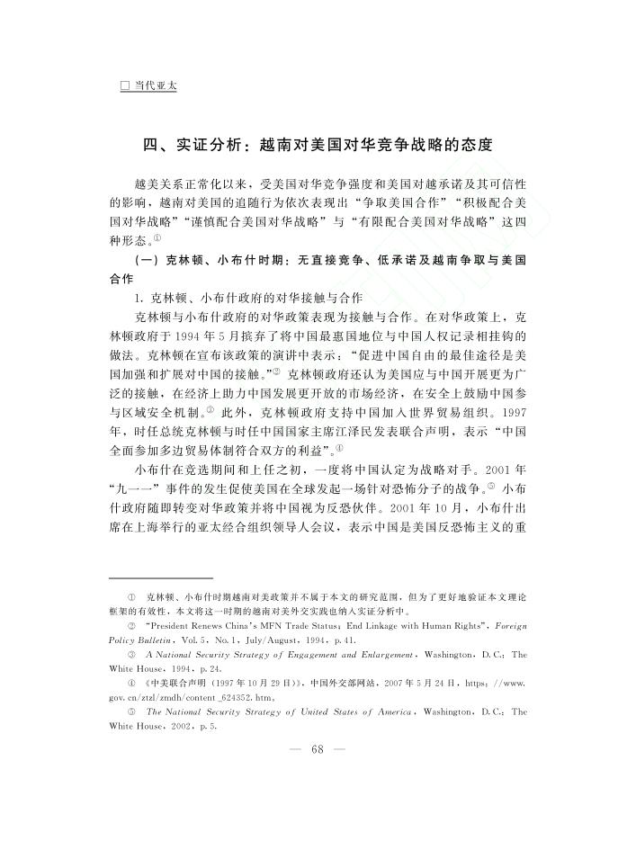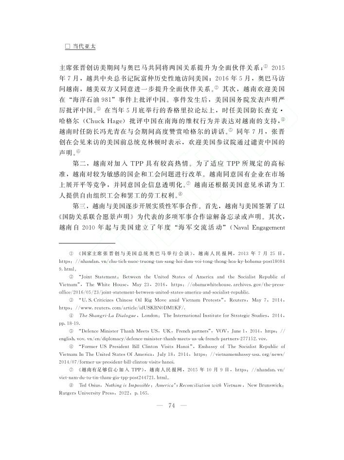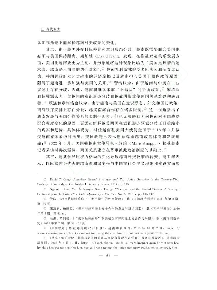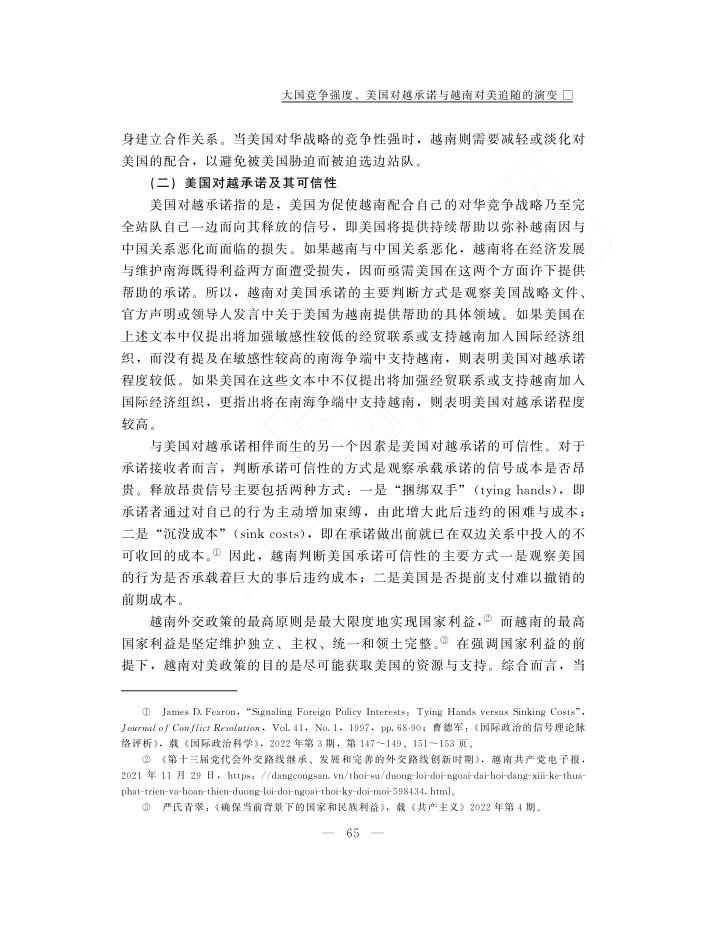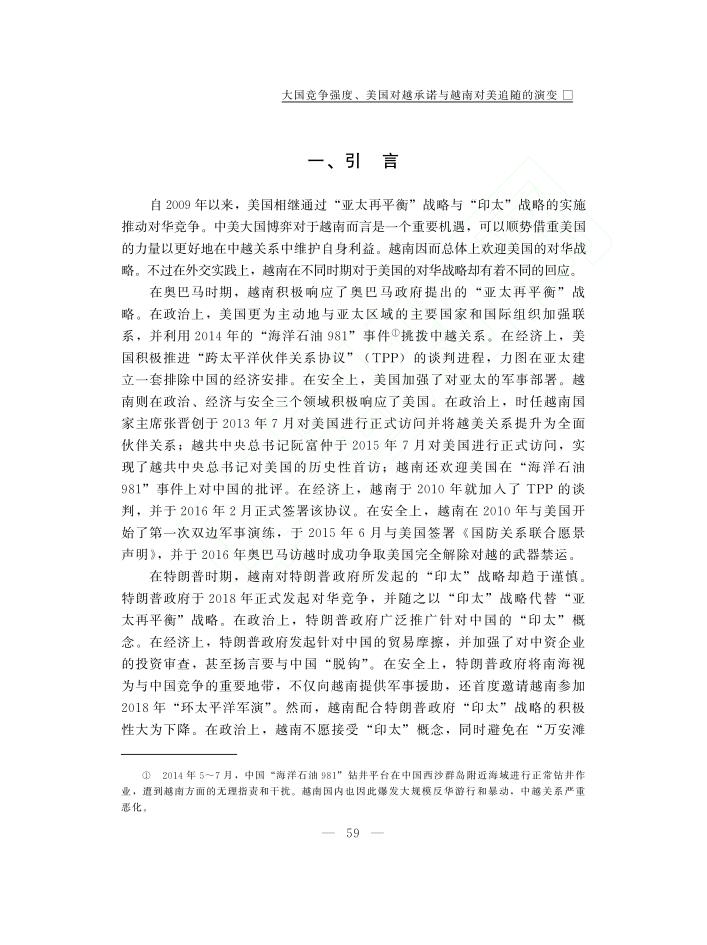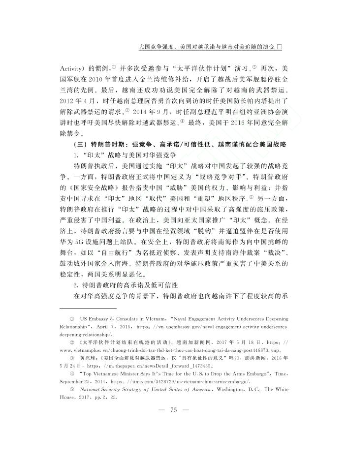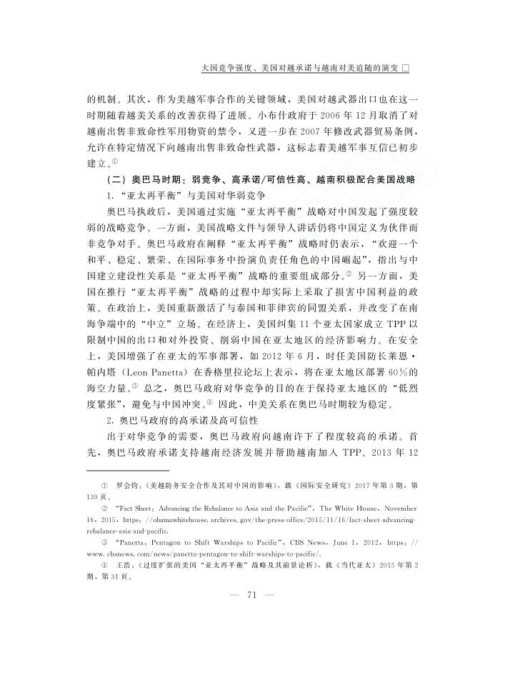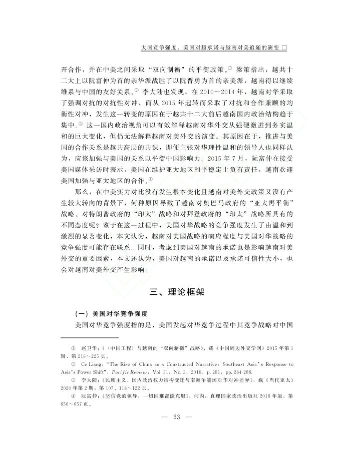 关键词:越美关系;“亚太再平衡”;“印太”战略;承诺可信性;追随