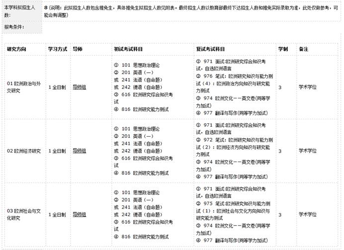欧洲学是以欧洲一体化问题为研究对象的一门学科。广东外语外贸大学欧洲学硕士是依托于外国语言文学一级学科的跨学科硕士研究生培养项目,下设欧洲政治与外交研究、欧洲经济研究、欧洲社会与文化研究等三个研究方向。