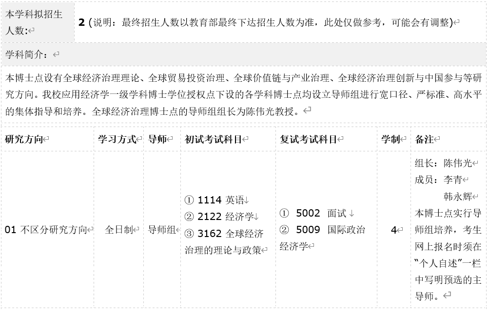 全国首批:在全国率先设立全球经济治理硕士点和博士点
