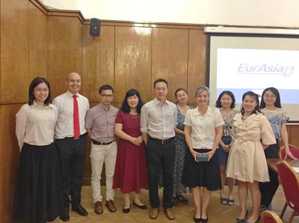 7月2日,索菲亚大学副校长以及EURASIA项目总协调人玛利亚·斯托伊切娃教授会见了广外、北外的老师,明确项目财务状况以及下一步的安排。3日上午,保加利亚前任驻华大使、前任外交部亚洲太平洋司司司长安格尔·奥贝佐夫到访索菲亚大学,出席索菲亚大学欧亚研究中心成立仪式,就中保关系发表演讲。他表示愿意积极参与和支持EURASIA项目,希望能在2020年4月访问广东外语外贸大学,参加欧洲研究中心的组织的国际会议。索菲亚大学欧亚研究中心负责执行EURASIA项目,由参与项目的欧亚伙伴院校共同组成。广东外语外贸大学受邀成为欧亚研究中心的理事会成员。